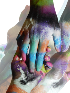 This is a multi media piece surrounding colors, race and human identity. Melding people together. I photographed two spray painted hands to show this. All the different colors represent different sectors of our communities, the hands are how we come together, broken and cracked sometimes, to show one beautiful human identity in this world. I hope this work inspires others to reach out to cultures they don’t understand and cross the divide into another persons world.
