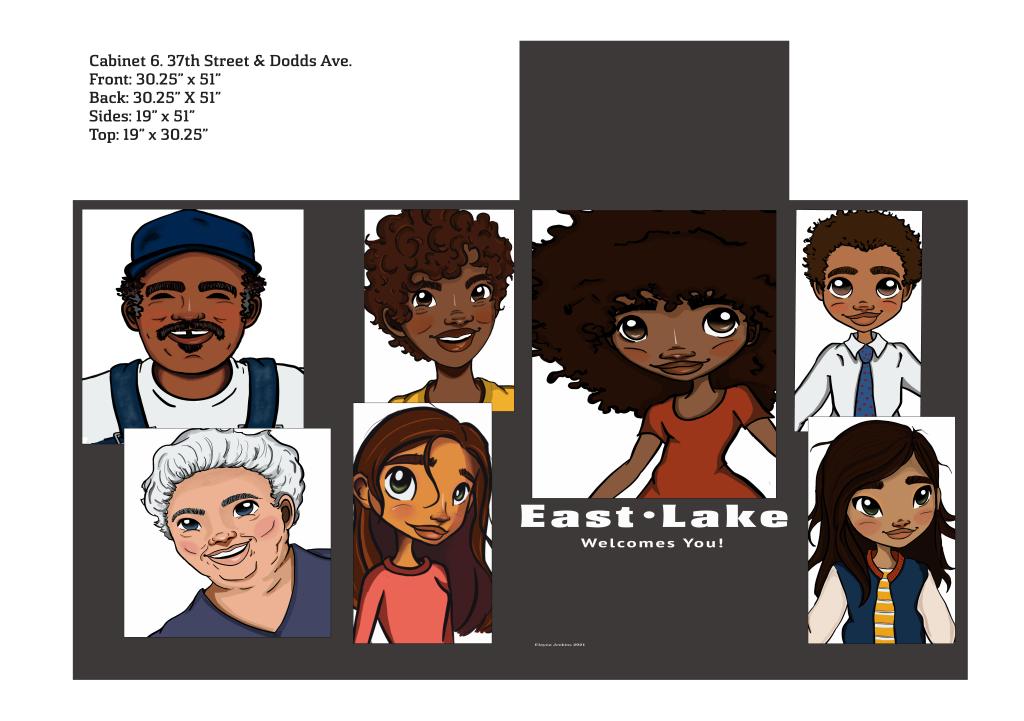 Growing up in the East Lake area, my neighbors and community influenced my early years and are the basis of who I am today. My artwork highlights some of the old and new faces that have shaped the community. It provides a glimpse into the glorious melting pot that our community has become. With its rich history and diverse cultures, East Lake continues to be a great place to live.